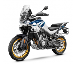 L'équipement tout-terrain spécifique avec une suspension réglable de 43 mm et un débattement accru, un garde-boue haut, un bras oscillant en aluminium et un guidon avec barre transversale, en fait le compagnon idéal pour de nouvelles aventures.